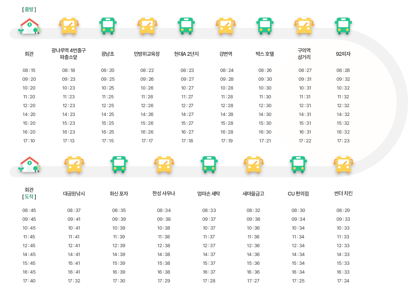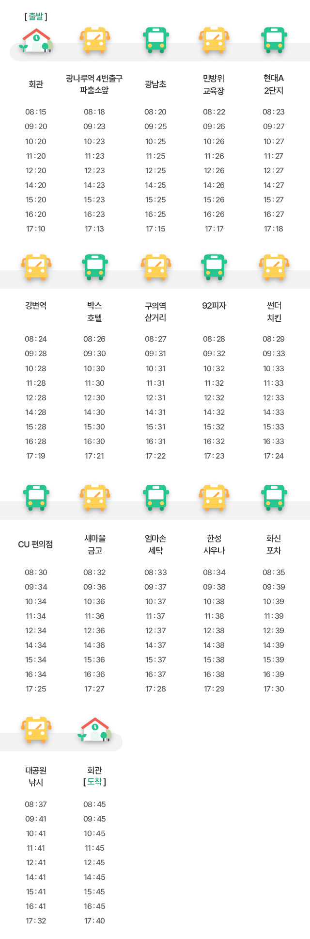 1호차 셔틀버스 시간표 (강변역, 광나루역 방면)