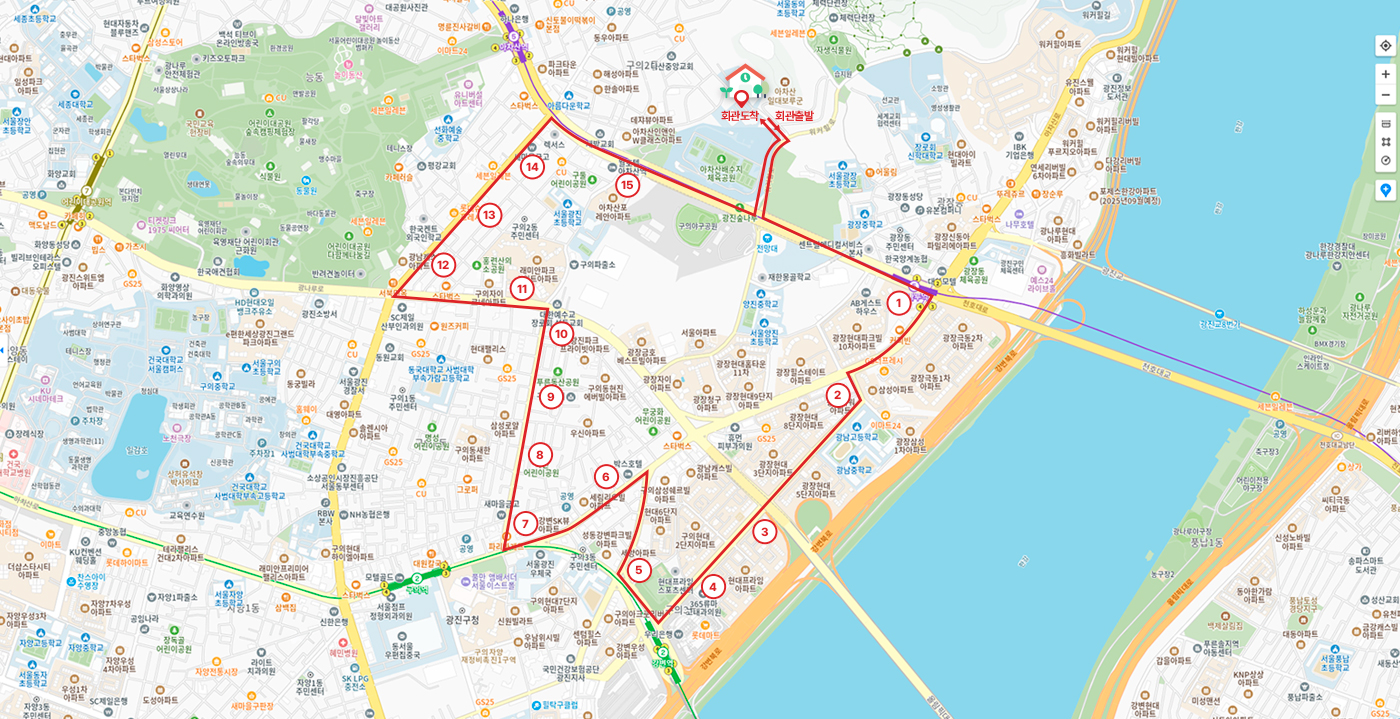 1호차 셔틀버스 시간표 (강변역, 광나루역 방면)